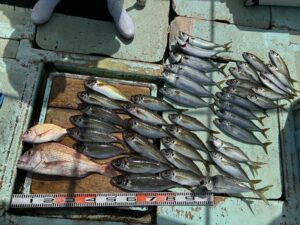 釣果は真鯛 本命の40cm Overの真鯵